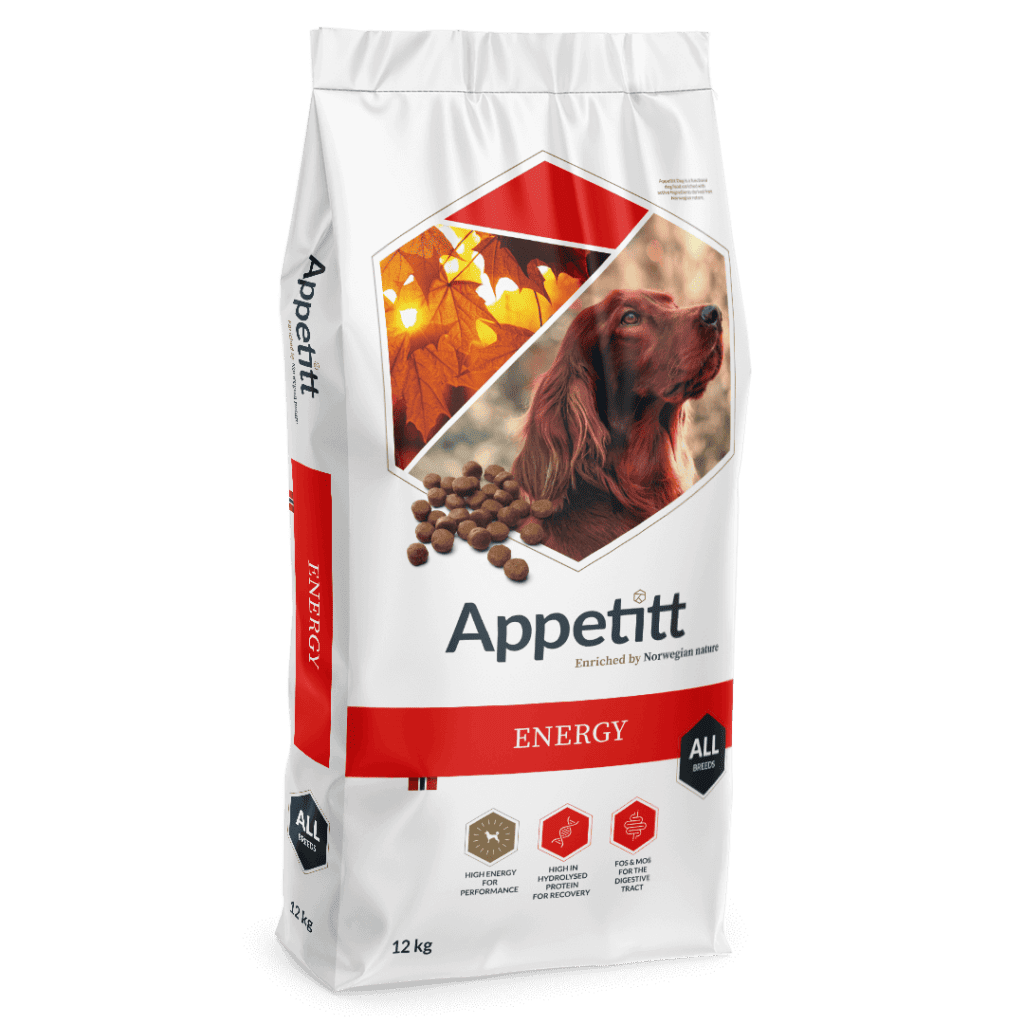 Das Appetitt Energy Trockenfutter hat einen hohen Energiegehalt und ist ideal für erwachsene Hunde mit hoher Aktivität. Hündinnen in der zweiten Schwangerschaftsperiode oder während der Schwangerschaft.