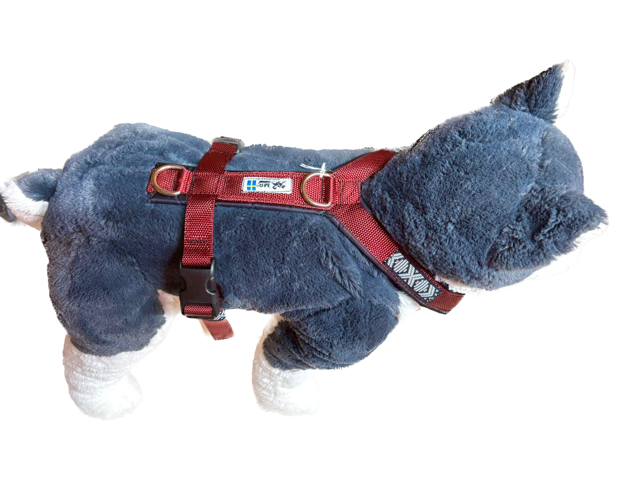 Die Geschirre haben einen ausgezeichneten Schnitt und verrutschen nicht wie die meisten herkömmlichen Geschirre auf die Seite. Die Hunde haben im MR Koppel Geschirr genug Beinfreiheit. Sie verfügen über zwei  O – Ringe zum festmachen des Hundes und zwei robusten Klickverschlüssen seitlich am Rücken.  Das Geschirr ist auf beiden Seiten der Brust grössenverstellbar.